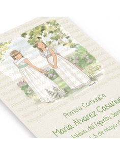 Dibujo de Primera Comunión. Niña en columpio con Ángel de la guarda.