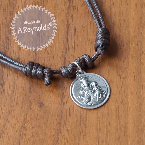 Escapulario de Plata de Ley con la Virgen del Carmen y Sagrado Corazón montada en gargantilla de cordón estampado liberty.
