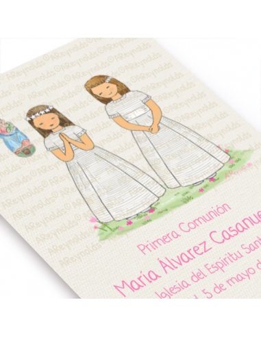 Dibujo de Primera Comunión. Niñas con traje y Virgen del colegio Valverde.