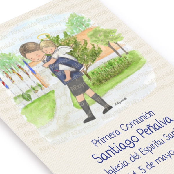 Dibujo de Primera Comunión. Niño con uniforme del Colegio Viaró.