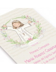 Dibujo de Primera Comunión. Niña de túnica y corona de flores.