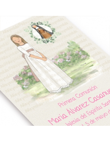 Dibujo de Primera Comunión. Niña con imagen de Santa Joaquina Vedruna.