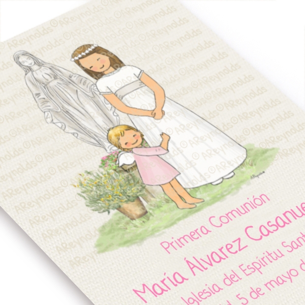Dibujo de Primera Comunión. Niña con Virgen del colegio Santa Joaquina Vedruna.