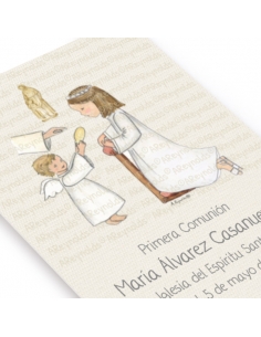 Dibujo de Primera Comunión. Niña con traje, angelito y Virgen del colegio Valverde.